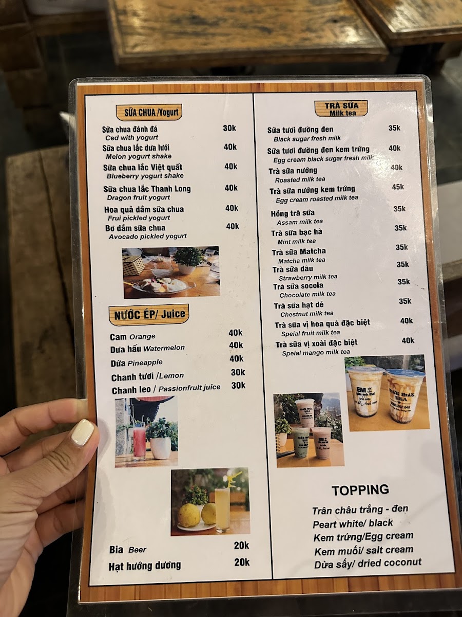 Enthusiasts of milk tea will be glad to discover a range of flavors, with specific praise aimed at the trà sữa (milk tea) for its perfect level of sweetness, offering just the right balance for those who prefer a less sugary drink. Hương Hoàng captures the spirit of the menu by expressing her delight in finding the perfect milk tea—“trà sữa ngon vì ít ngọt đúng ý mình”—which translates to “delicious milk tea because it’s not too sweet, just how I like it.”